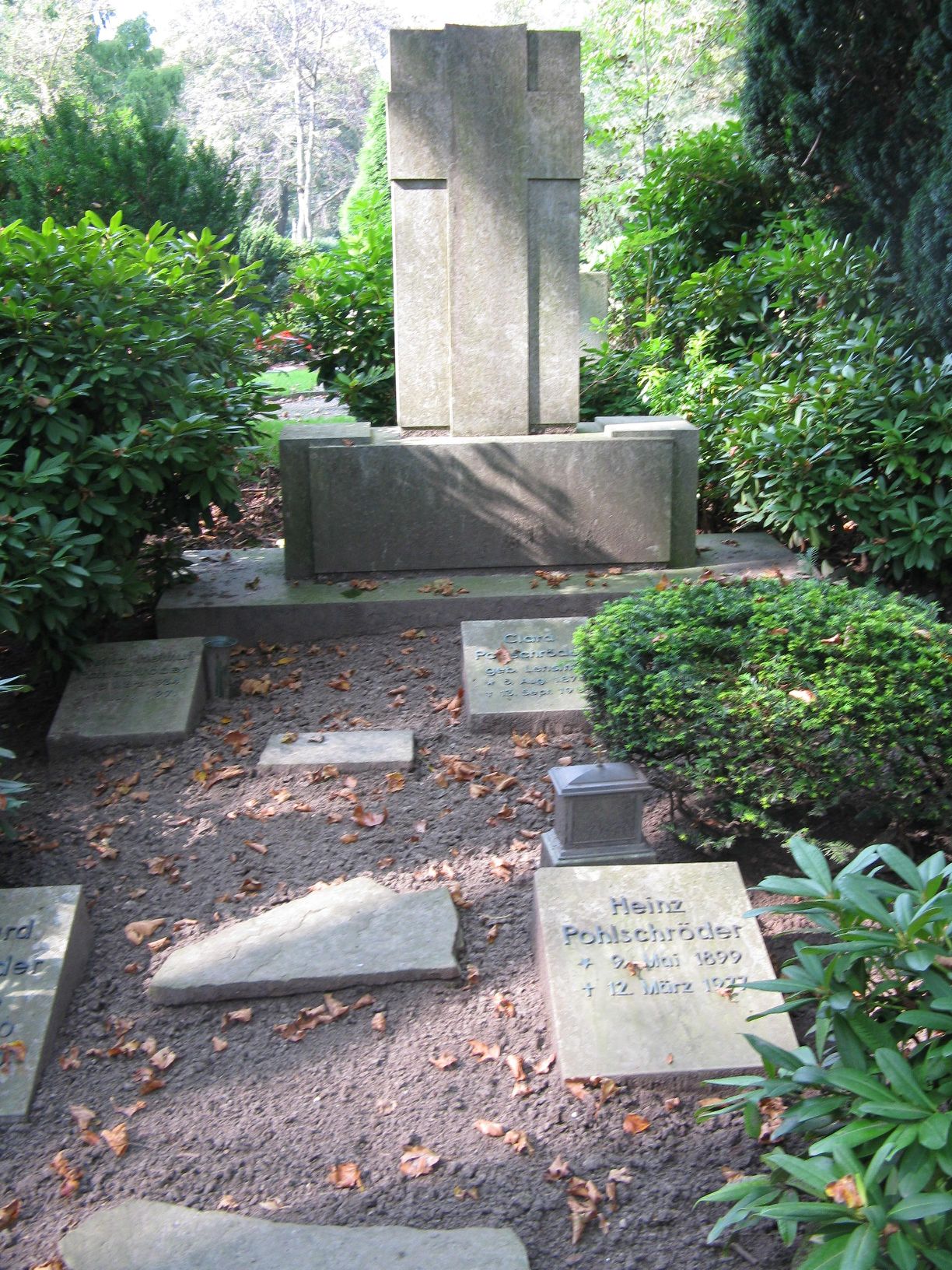 Grab Pohlschroeder // Grab Pohlschroeder-Lensing “Als der Gründer Friedrich Pohlschröder1895 starb, setzte Heinrich das Werk des Vaters fort... Diese Grundlage diente den beiden Enkeln, Heinz und Hans Pohlschröder als Ausgang“ >>mehr ZEIT ONLINE “Hundert Jahre Pohlschröder“