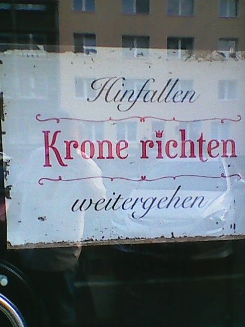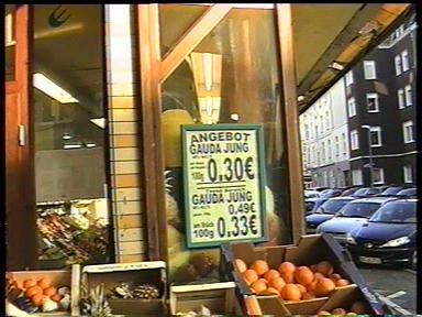 "Gaudi" oder Schreibfehler auf Werbeplakat an einem Lebensmittelgeschäft im KREUZviertel ?